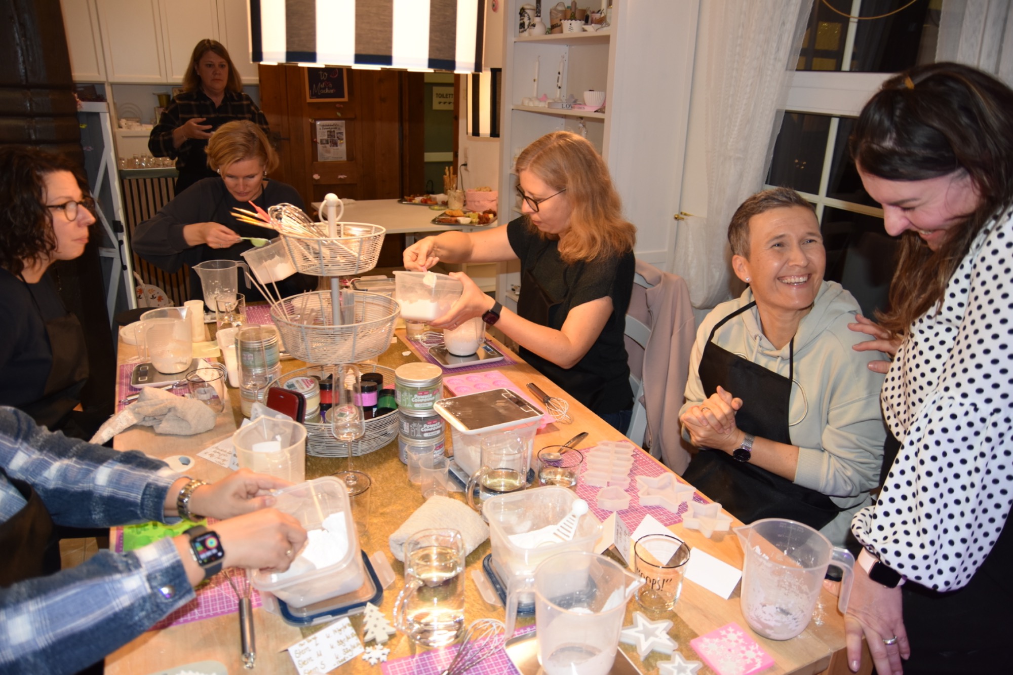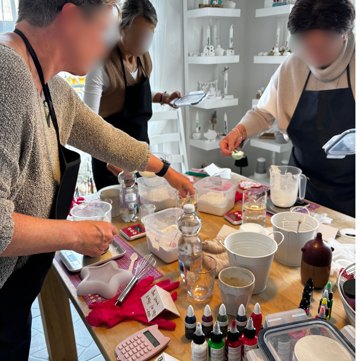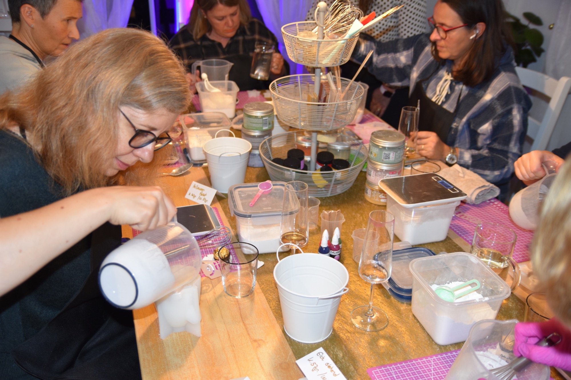 Besonders das Gießen der individuellen Objekte stand im Mittelpunkt und sorgte für strahlende Gesichter. Die Teilnehmer hatten nicht nur sichtlich Spaß am kreativen Prozess, sondern auch an der vielfältigen Auswahl der bereitgestellten hochwertigen Silikonformen. Jeder konnte genau das passende Motiv für sein persönliches Kunstwerk finden.