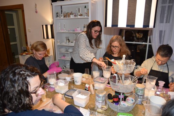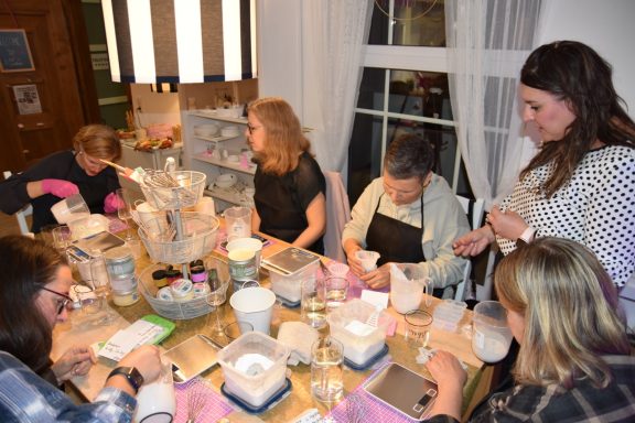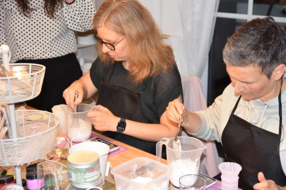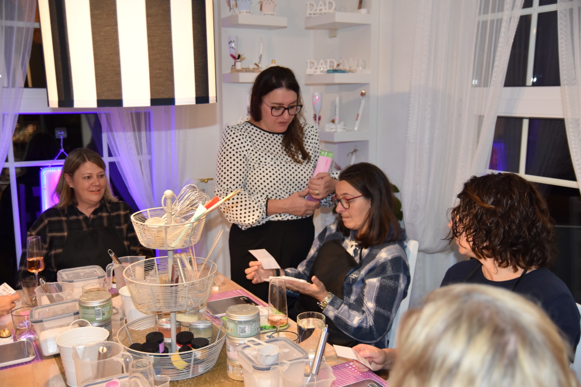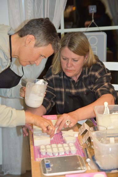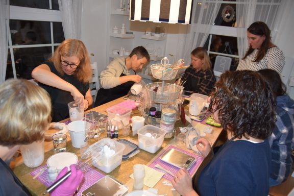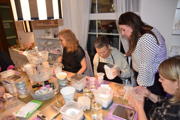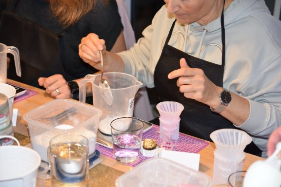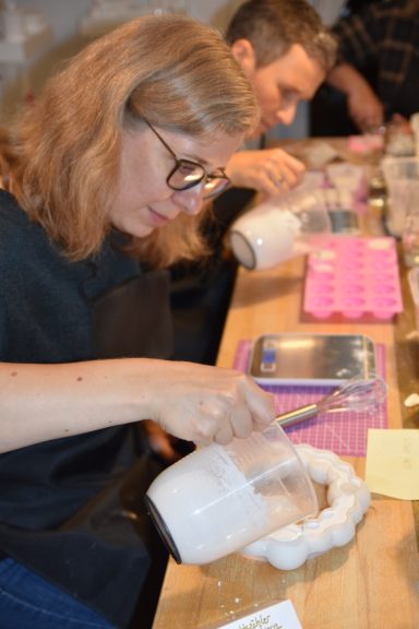 Besonders das Gießen der individuellen Objekte stand im Mittelpunkt und sorgte für strahlende Gesichter. Die Teilnehmer hatten nicht nur sichtlich Spaß am kreativen Prozess, sondern auch an der vielfältigen Auswahl der bereitgestellten hochwertigen Silikonformen. Jeder konnte genau das passende Motiv für sein persönliches Kunstwerk finden.